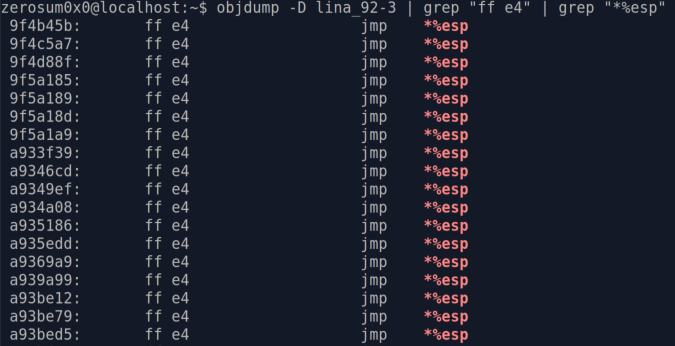 - The RET smash, which should be JMP ESP (ff e4) bytes
