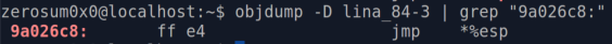 This is an offset in 8.4(3) to 0x09a026c8. As this was a classic stack buffer overflow exploit, my gut told me this was where we would overwrite the RET address, and that there would be a JMP ESP (jump to stack pointer) here. Sometimes your gut is right:
