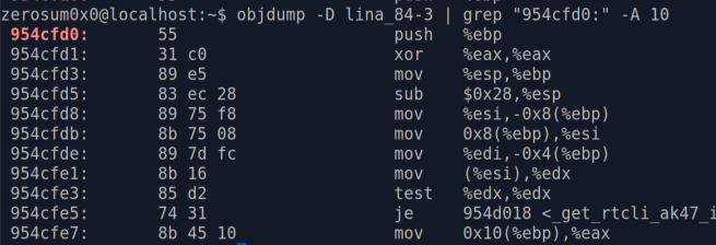 The vulnerable file is called "lina". And it's an ELF file; who needs IDA when you can use objdump?